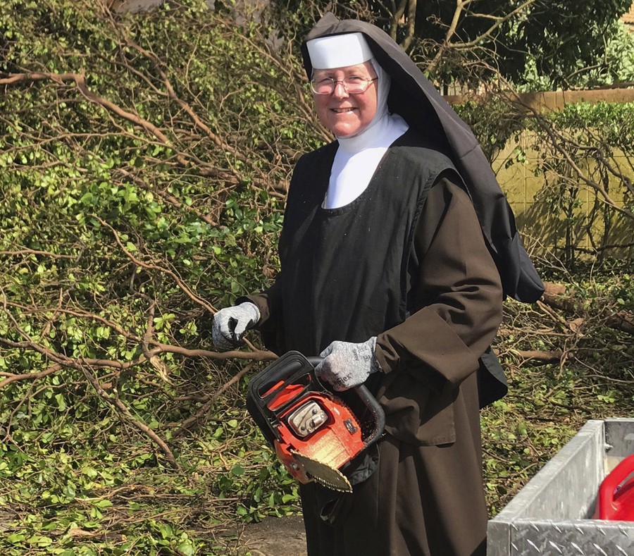 Read moreSister Margaret Ann holds a chainsaw near Miami, Florida, on September 12, 2017. Police said the nun was cutting trees to clear the roadways around Archbishop Coleman Carrol High School in the aftermath of Hurricane Irma. #