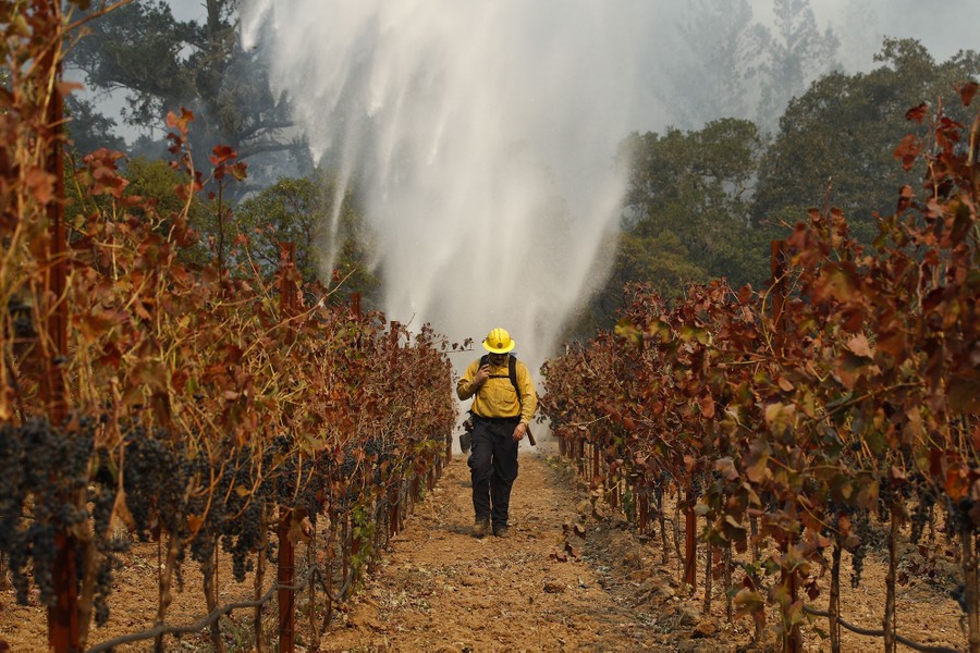 Read moreA firefighter carries a water hose to put out a fire along Highway 29 on October 13, 2017, near Calistoga, California. Firefighters gained some ground on a blaze burning in the heart of California's wine country but faced another tough day ahead with low humidity and high winds expected to return. #