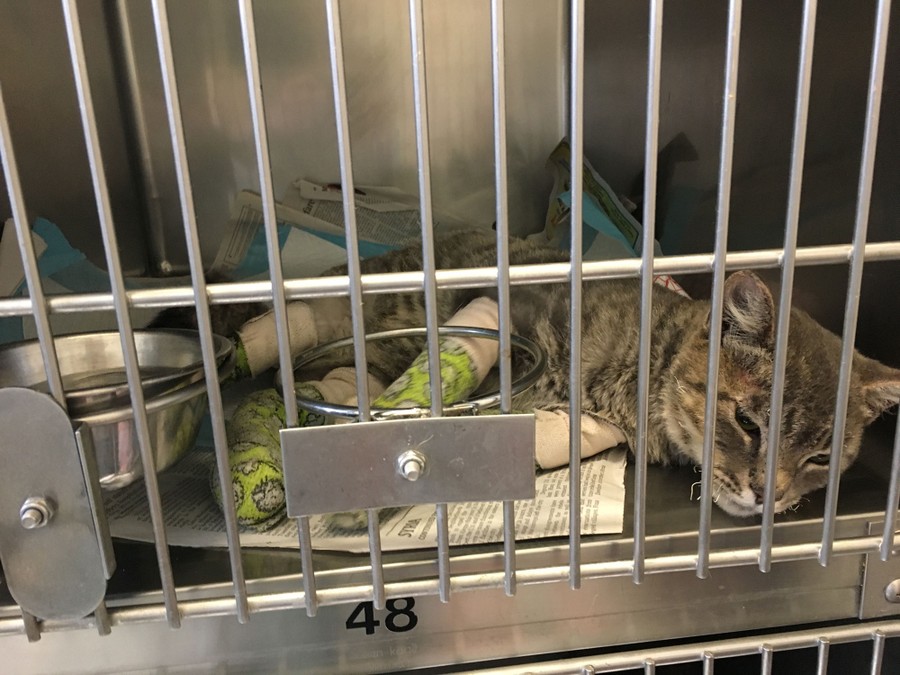 Read moreAn unidentified cat that injured his paws when wildfires swept through California wine country is cared for at Sonoma County Animal Services in Santa Rosa on October 14, 2017. In a frantic race to escape the flames, many people were forced to leave their pets behind, and many are being brought to the county animal shelter where a team of veterinarians is looking after them. #