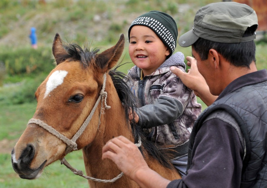 Read moreA father teaches his son to ride a horse in a pasture of the Suu-Samyr Plateau in Kyrgyzstan, 2,500 meters above sea level, along the ancient Silk Road from Bishkek to Osh, some 200 kilometers from Bishkek, on August 7, 2013. #