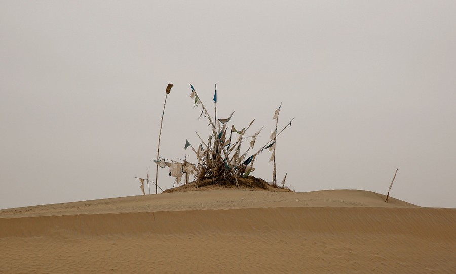 Read moreFlag-festooned poles stand over a grave in a cemetery surrounding the tomb of Imam Asim in the Taklamakan Desert outside the village of Jiya near Hotan, Xinjiang, China, on March 21, 2017. #