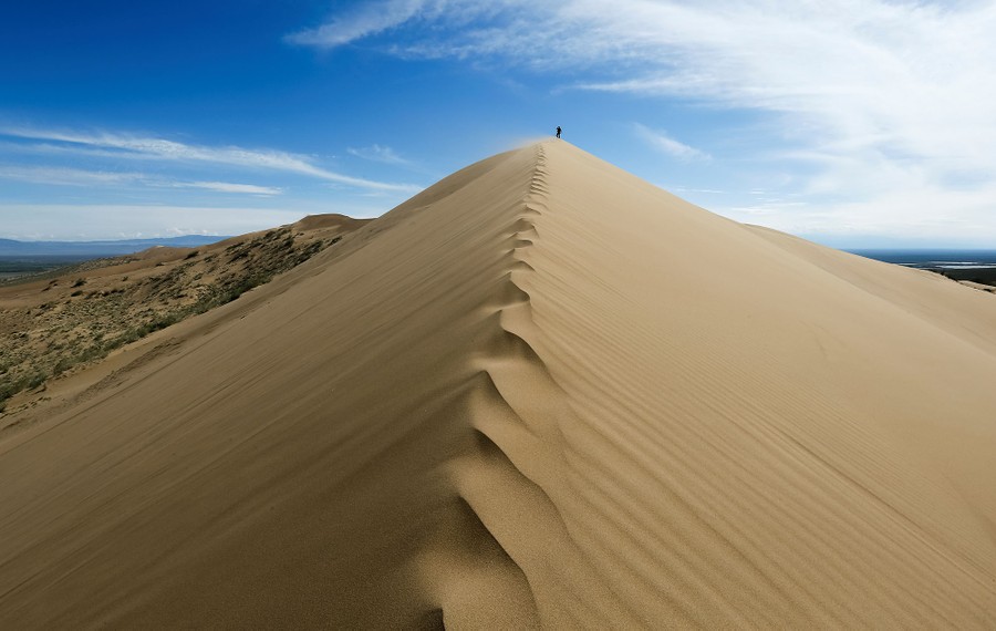 Read moreA tourist stands at the edge of the Singing Sand Dunes. Here, a large 495 foot (150 meter) dune which is famous for the noises it produces, in Altyn-Emel National Park in Kazakhstan's Almaty region, on May 12, 2016. #
