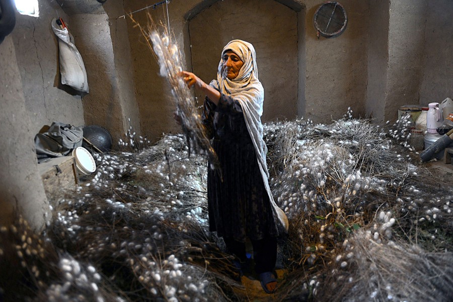 Read moreAn Afghan worker collects a silkworm cocoon from dried mulberry leaves in Zandajan district of Herat province, Afghanistan, on May 22, 2014. Once a stop along the Silk Road, western Afghanistan has a long tradition of producing silk used to weave carpets, a process that dates back thousands of years. Carpets are Afghanistan's best-known export, woven mostly by women and children in the north of the country, a trade which once employed, directly or indirectly, six million people, although that figure has since dropped sharply. In cooperation with a non-profit organization, the Department of Agriculture in Herat provided some 5,050 silkworm boxes to several districts at the beginning of 2014 to revive silk production in the region. 42,500 women and their families were involved in the project, which aimed to provide a means of subsistence and potentially lead to international market access for silk producers in the country. #