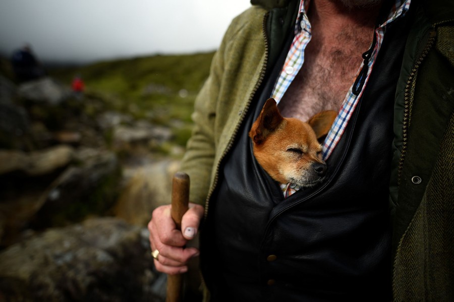 Read moreDominic Geraghty's dog Edward sleeps in his waistcoat after descending Croagh Patrick holy mountain during an annual Catholic pilgrimage near Lecanvey, Ireland, on July 30, 2017. #