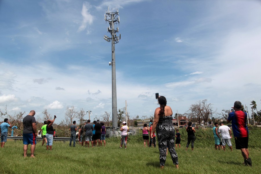 Read morePeople stop off a highway near a mobile phone antenna tower to try to get a signal after the area was hit by Hurricane Maria in Dorado, Puerto Rico, on September 25, 2017. The island's already-stressed electric grid was enormously damaged by the storm, and as of early December, two months later, only about 65 percent of the power has been restored, with authorities cautioning that it may take several more months to reach 95 percent. #