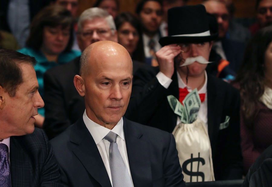 Read moreFormer Equifax CEO Richard Smith (center) prepares to testify before the Senate Banking, Housing, and Urban Affairs Committee in the Hart Senate Office Building on Capitol Hill, on October 4, 2017, in Washington, D.C. He is shadowed by a protester in the audience dressed as the Monopoly Man, or "Rich Uncle Pennybags." Smith stepped down as CEO of Equifax after it was reported that hackers broke into the credit reporting agency and made off with the personal information of nearly 145 million Americans. #