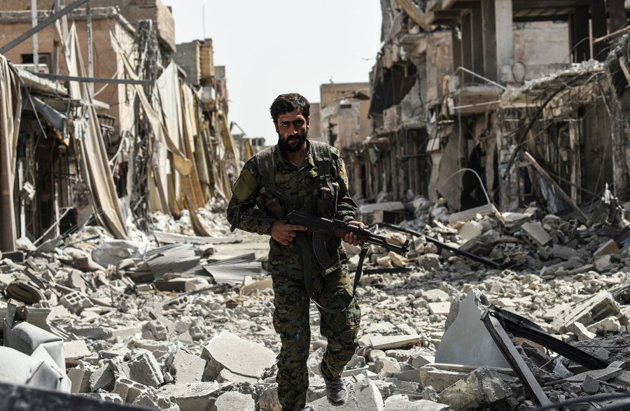 Read moreA member of the Syrian Democratic Forces walks through debris in the old city center on the eastern front line of Raqqa, Syria, on September 25, 2017. Syrian fighters, backed by U.S. special forces, were battling to clear the last remaining ISIS fighters holed up in their crumbling stronghold of Raqqa. #