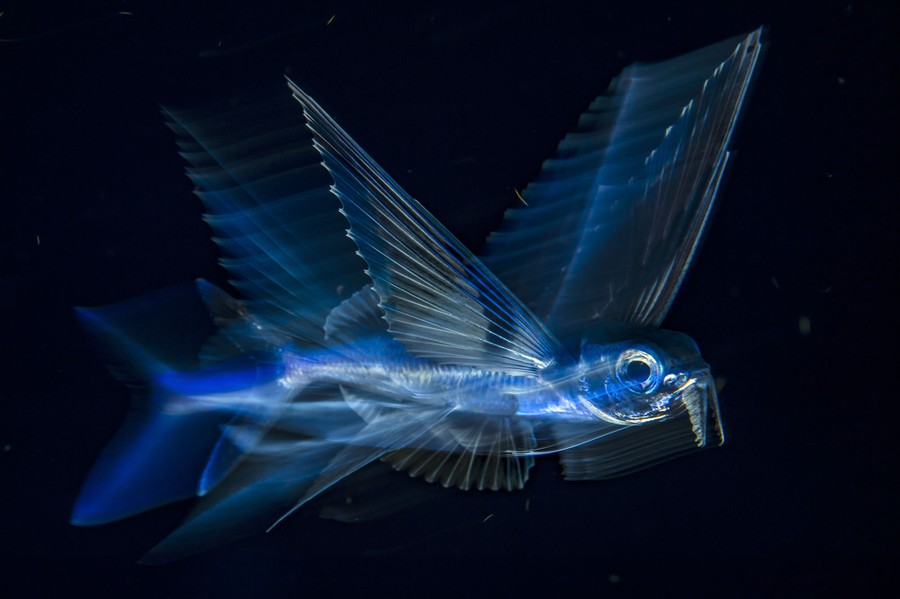 Read moreFlying fish in Motion. Third Place, Underwater. Buoyed by the Gulf Stream, a flying fish arcs through the night-dark water five miles off of Palm Beach, Florida. #