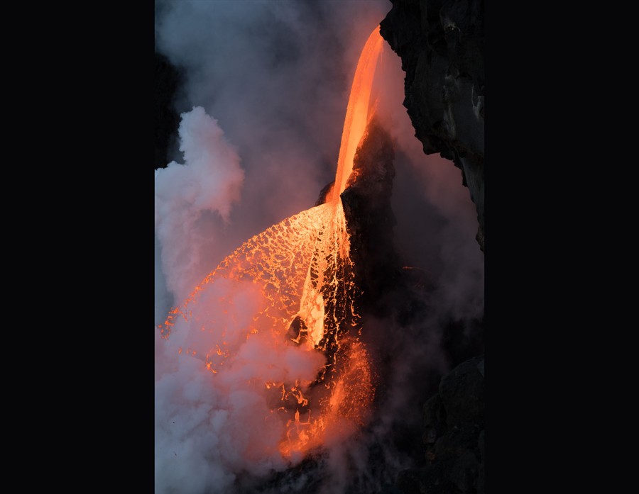 Read moreFirefall. First Place, Landscapes. Shortly before twilight in Kalapana, Hawai’i, a fragment of the cooled lava tube broke away, leaving the molten rock to fan in a fiery spray for less than half an hour before returning to a steady flow. #