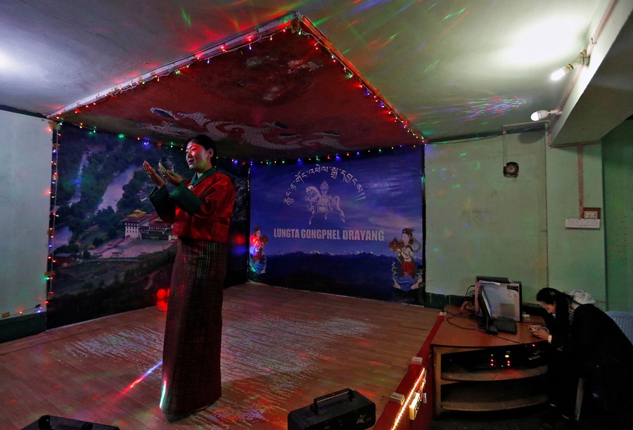 Read moreDrayang dancer Lhaden, 38, performs in a bar in Thimphu on December 16, 2017. Lhaden, a divorced mother of two, dances until midnight, and like thousands of her compatriots, is struggling to make ends meet. "I'm not happy or sad about things; I have no other choice," she said. Lhaden, who earns $125 a month, is counting the pennies. "I live in such a small flat so I can afford food and clothes." #