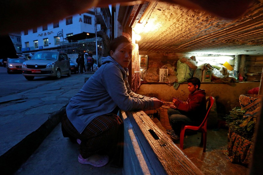Read moreA woman waits to buy doma from a shop in Thimphu on April 13, 2016. Chewing on the addictive "doma pani," which is made of areca nut wrapped in betel leaves, has long been a traditional part of Bhutanese life. #