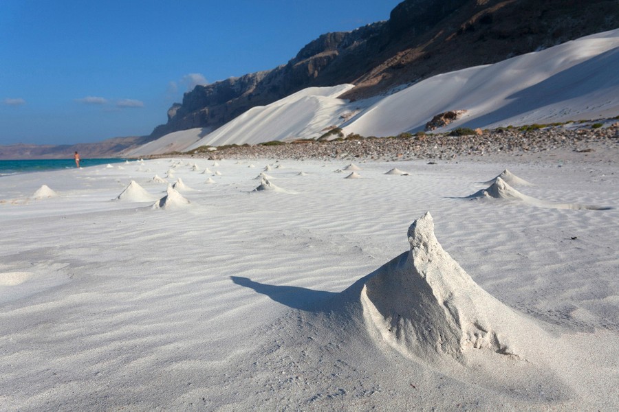 Read morePale Socotran dunes. While the island has a tropical desert climate, only small regions along the southern shore have stretches of sand dunes. #