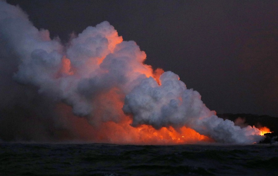 Read moreSteaming particles of molten rock fall into the ocean after steam-driven explosions were generated when the hot lava flowed into the Pacific southeast of Pahoa on May 20, 2018. #