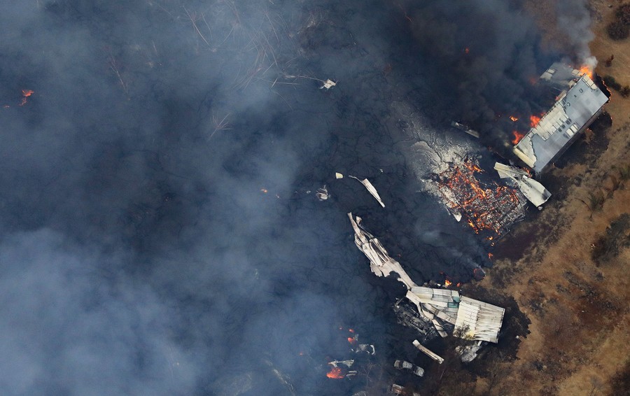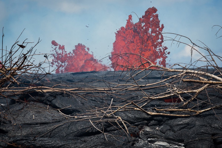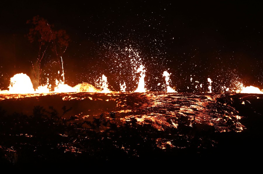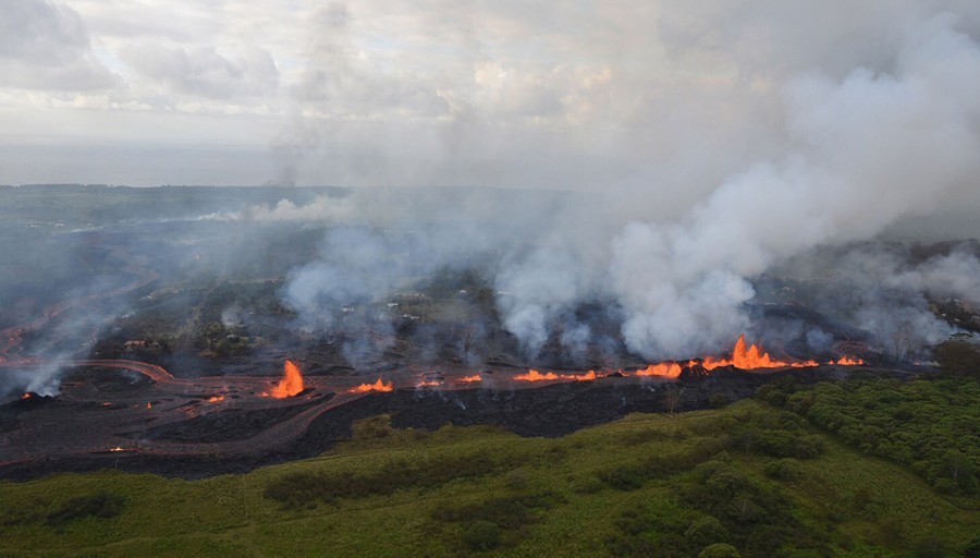 Since the Kilauea volcano began its most recent eruptive activity on Hawaii's Big Island three weeks ago, the situation has evolved and worsened. More than 40 structures have been destroyed and one resident was badly injured when he was struck in the leg by a molten hunk of rock thrown from one of the erupting fissures. The Associated Press reported that some fissures were merging and producing faster and more fluid lava, which began flowing in glowing rivers toward the Pacific Ocean. Over the weekend at least two of the lava flows reached the shore, sending up billowing plumes of steam, and generating “laze,” or lava haze, a dangerous mix of hydrochloric acid, steam, and volcanic glass particles. Geologists continue to urge caution and patience during this event, saying that Kilauea remains volatile with no predictable end in sight for the current eruptions.