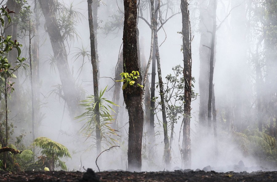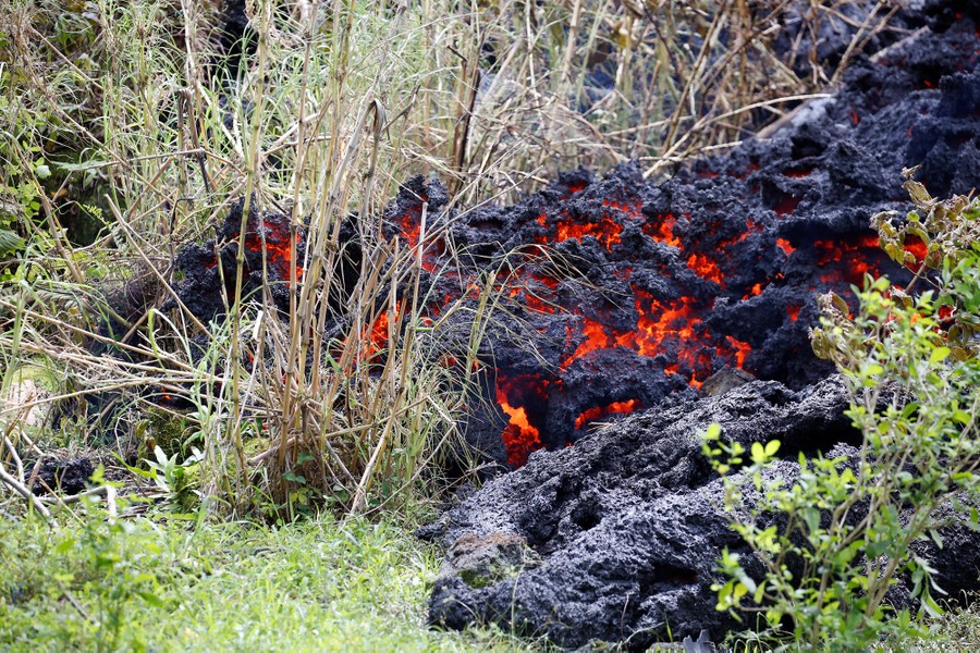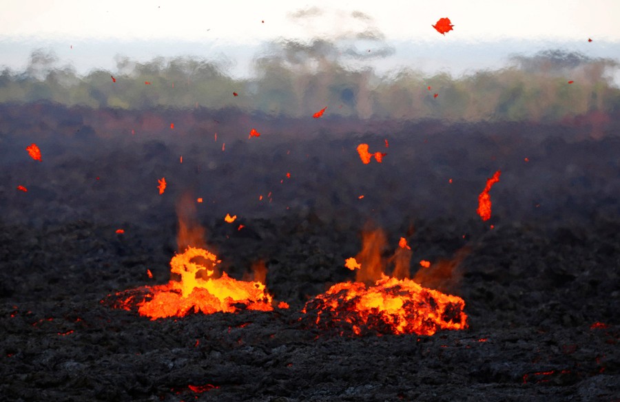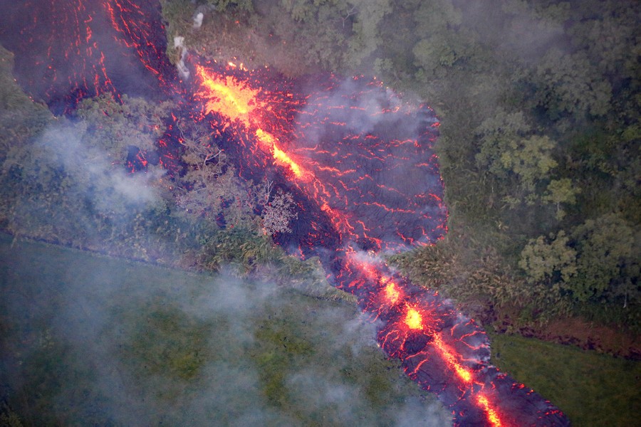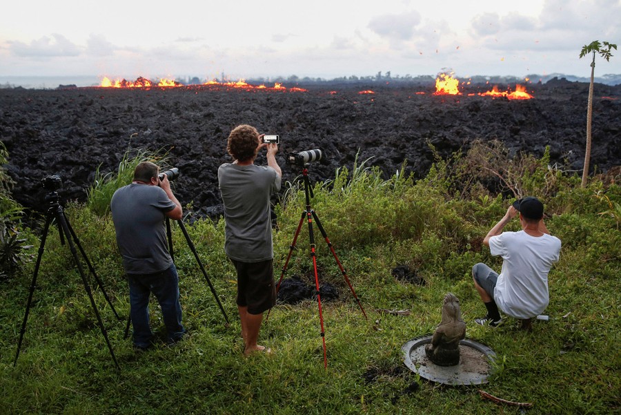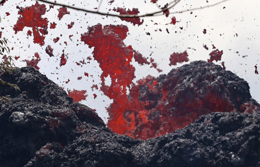The newest phase of Kilauea volcano’s ongoing eruption has opened as many as 20 new fissures on Hawaii's Big Island over the past two weeks, spewing lava and volcanic gases, forcing the evacuation of nearly 2,000 residents, and destroying dozens of homes near the town of Pahoa. Officials from the U.S. Geological Survey have been watching a recent lowering of the lava lake in Kilauea’s Halemaumau crater, warning residents and visitors of a possible explosive eruption that could launch car-sized boulders far into the sky. Here, a collection of images from the past week of the new fissures, the lava flow, and its effects on the natural environment and human infrastructure.