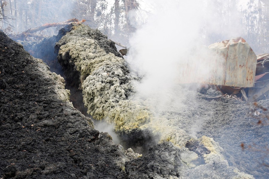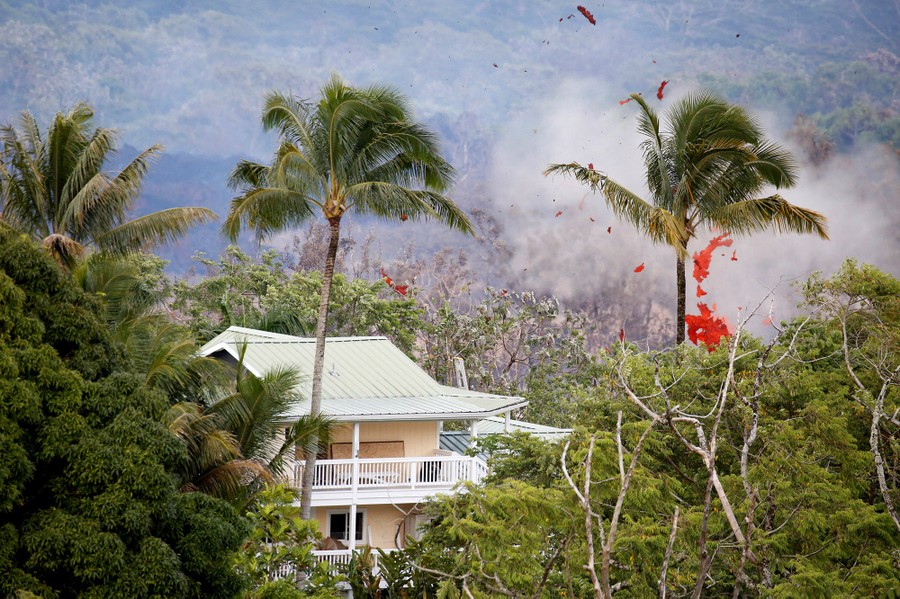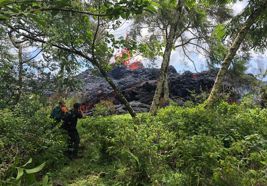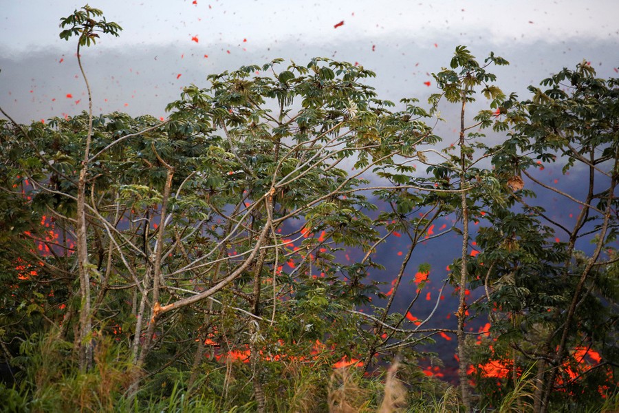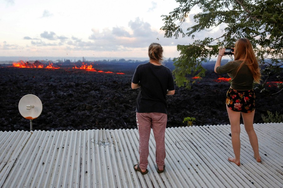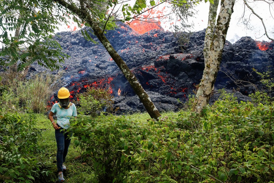 The newest phase of Kilauea volcano’s ongoing eruption has opened as many as 20 new fissures on Hawaii's Big Island over the past two weeks, spewing lava and volcanic gases, forcing the evacuation of nearly 2,000 residents, and destroying dozens of homes near the town of Pahoa. Officials from the U.S. Geological Survey have been watching a recent lowering of the lava lake in Kilauea’s Halemaumau crater, warning residents and visitors of a possible explosive eruption that could launch car-sized boulders far into the sky. Here, a collection of images from the past week of the new fissures, the lava flow, and its effects on the natural environment and human infrastructure.