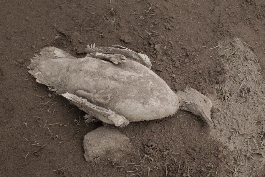 Read moreThe carcass of a duck blanketed with heavy ash on the ground in Escuintla on June 4, 2018. #
