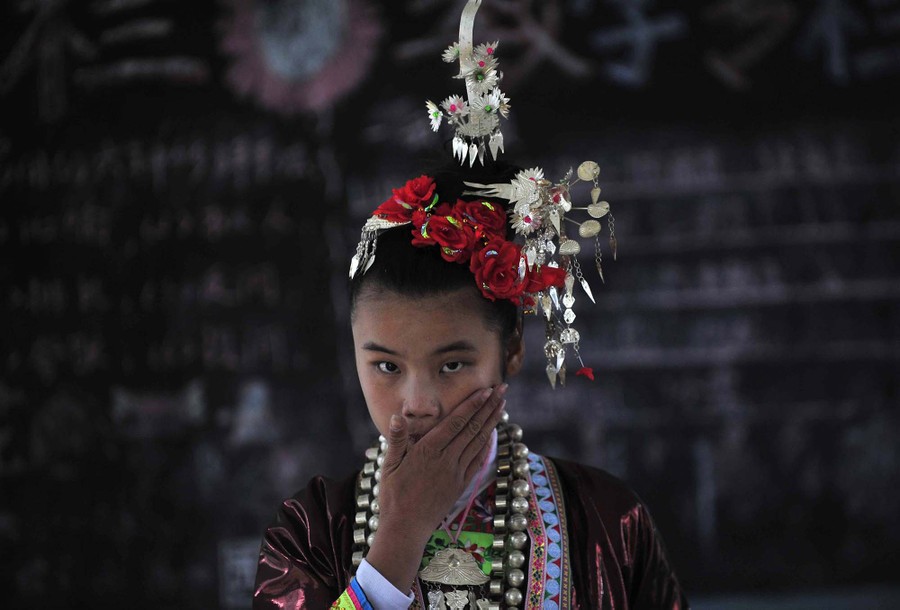 Read moreAn ethnic Dong minority girl applies makeup before participating in a Kam Grand Choir performance in Tongguan village of Liping county, on November 12, 2011. More than 2,000 local ethnic Dong minority residents gathered to participate in a Kam Grand Choir performance in memory of 18 young couples who sacrificed themselves for love, according to a local tale. #