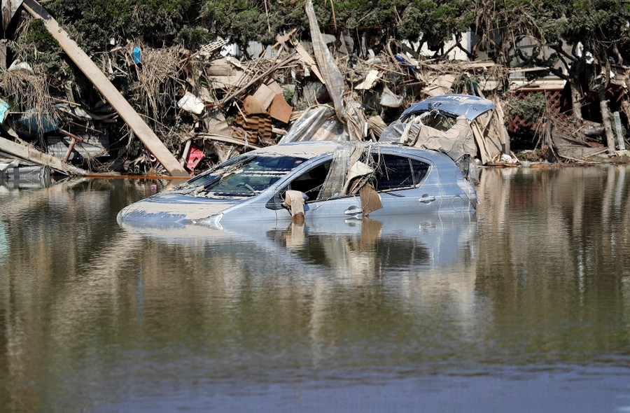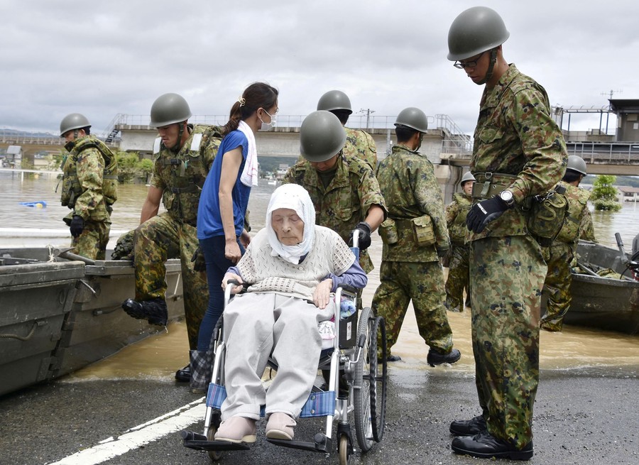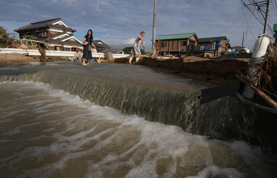 Over the weekend, sustained heavy rainfall hit parts of western and central Japan, causing flash flooding, setting off landslides, submerging floodplains, and forcing more than 2 million residents to evacuate. Today, Japan’s National Police Agency announced at least 200 people had died, and dozens were still missing, in the worst weather-related disaster to hit Japan in more than 30 years. More than 70,000 rescue workers are at work in hard-hit areas searching for survivors as the damage to villages, roads, and infrastructure is being assessed. Hundreds of thousands of homes remain without power or clean water.