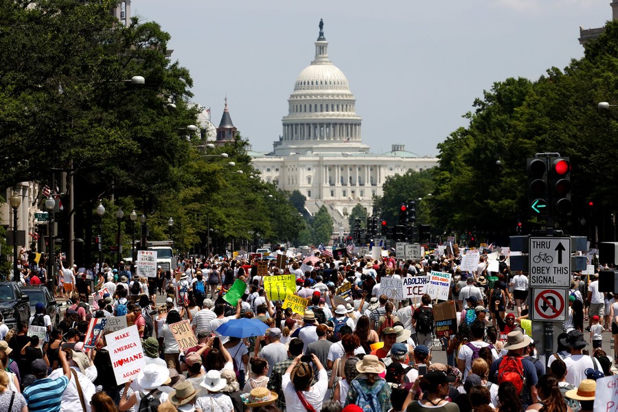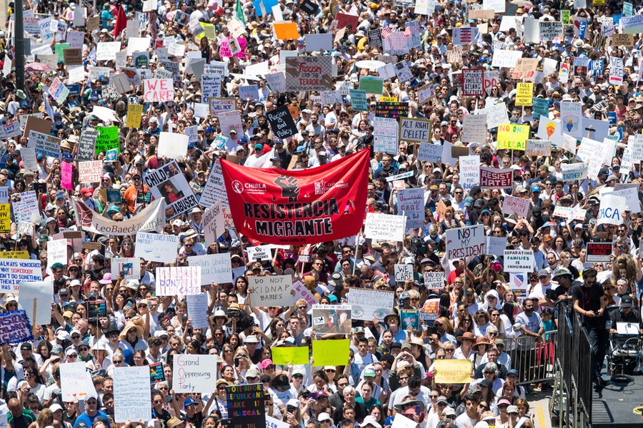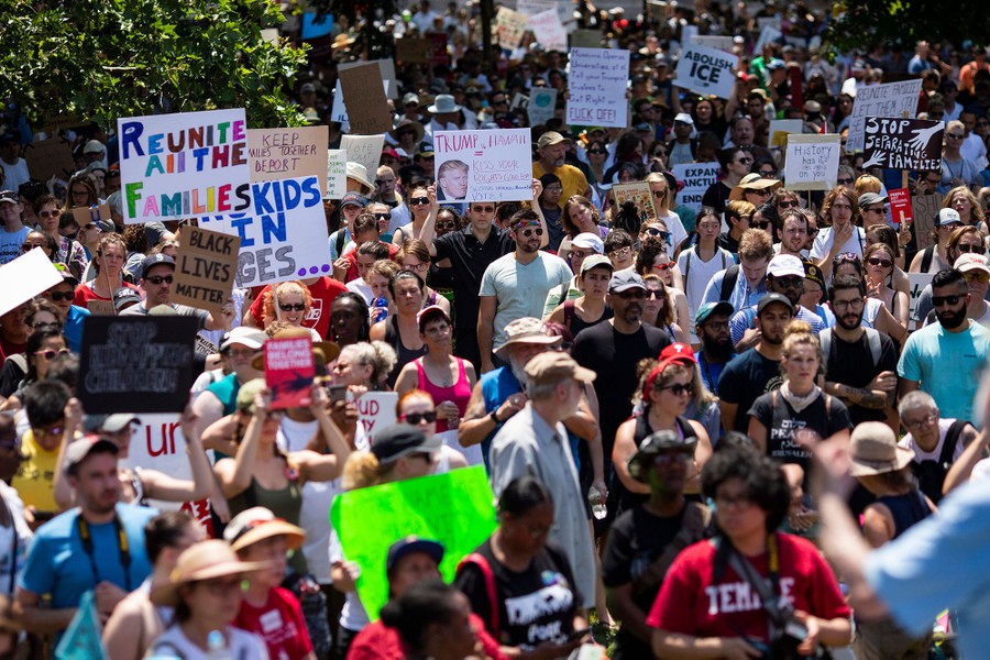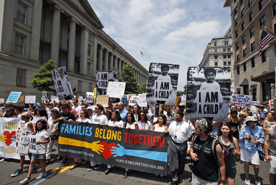 Across the country yesterday, hundreds of thousands of people took to the streets in small towns and big cities to march and voice their opposition to the Trump administration’s immigration policies. Demonstrators in more than 700 locations called for the swift reunification of immigrant families separated by border agencies, and an end to the policies that cause so many separations. Collected here, photos from Indianapolis, Boston, Denver, Los Angeles, Chicago, Salt Lake City, Philadelphia, Washington, D.C., and more.