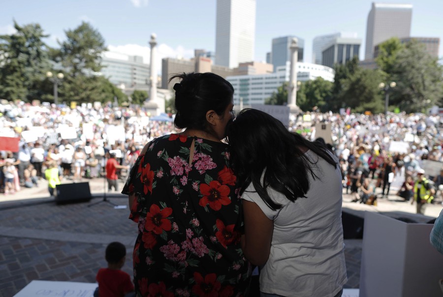 Read moreIn downtown Denver, Colorado, Brenda Villa, left, comforts her 11-year-old daughter, Kathryn, after speaking during an immigration rally and protest in Civic Center Park on June 30, 2018. The protest was one of hundreds staged nationwide that has brought liberal activists, parents and first-time protesters—motivated by accounts of children separated from their parents at the US-Mexico border—to press President Donald Trump to reunite families quickly. #