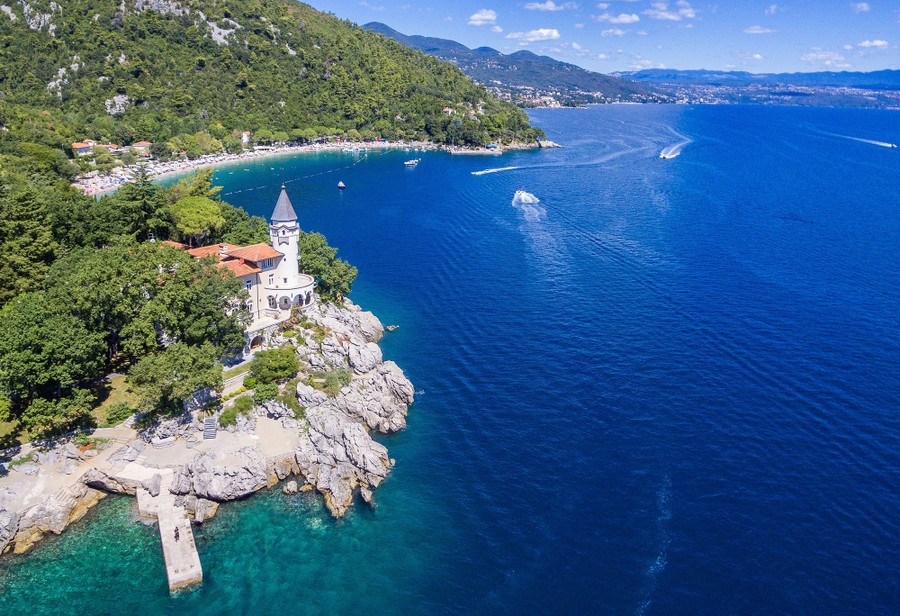 Read moreAerial shot of the famous Villa Castello near the tourist town Medveja. In the background, the beautiful Istrian coast. See it mapped here. #