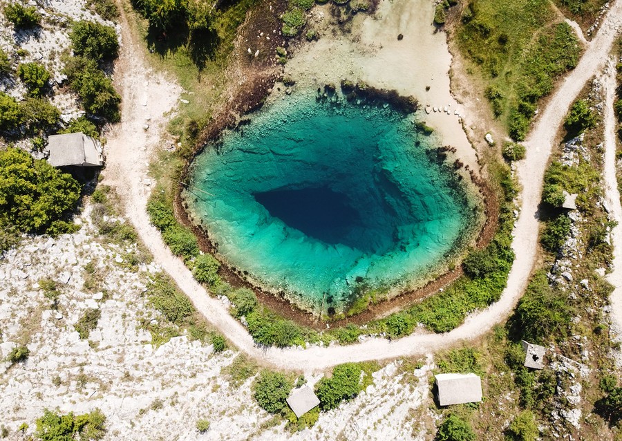 Read moreThe source of the Cetina River, a spring in the foothills of the Dinara Mountains, named "Blue Eye" (Modro oko). Crystal-clear waters emerge from a cavern more than 100 meters deep. See it mapped here. #