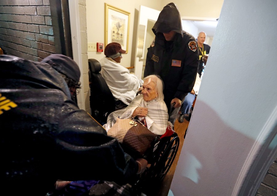 Read moreGloria Sanders, 87, is helped by members of the Nebraska Task Force 1 urban search-and-rescue team as they evacuate an assisted-living facility to a church as a precaution against potential flooding in Fayetteville, North Carolina, on September 15, 2018. #