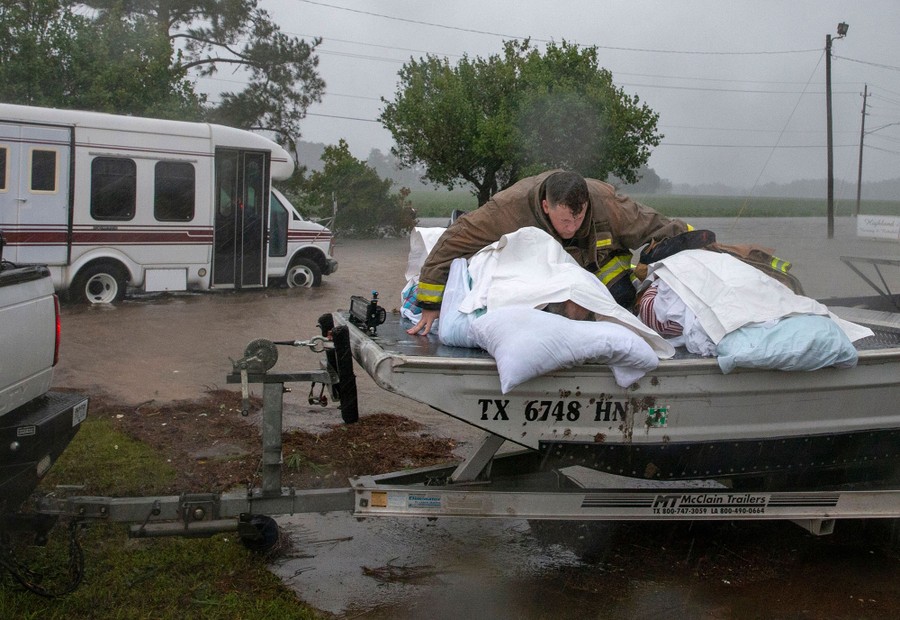 Read moreA Lumberton firefighter holds on to two nursing-home patients as a member of the Cajun Navy drives his truck during the evacuation of a nursing home in Lumberton, North Carolina, on September 15, 2018. Besides federal and state emergency crews, rescuers were being helped by volunteers from the Cajun Navy—civilians equipped with light boats, canoes, and air mattresses—who also turned up in Houston during Hurricane Harvey to carry out water rescues. #