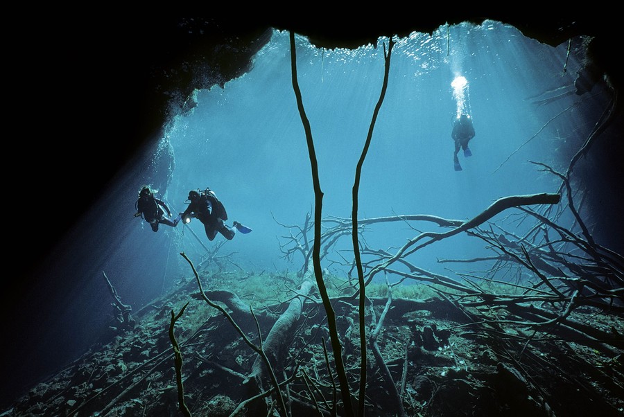Read moreA scuba diver swims through shafts of light coming into a massive underground, underwater cave in the Cenote Taj Maha in Quintana Roo, Mexico, on September 27, 2018. #