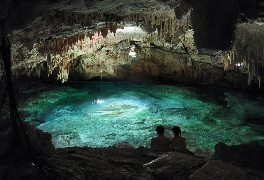 Read moreTourists enjoy the Cenote Ik Kil outside of Chichen Itza, Mexico. Cenotes are massive sinkholes formed when the ceiling of a cave collapses underwater, creating a network of underwater caverns in crystal-clear water that divers come from around the world to explore. #