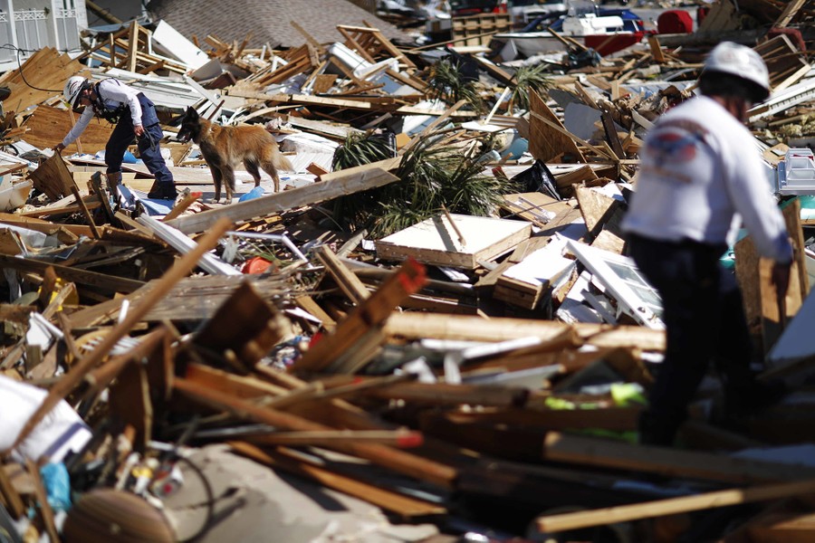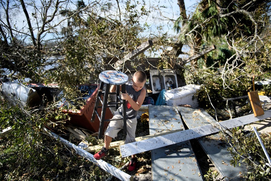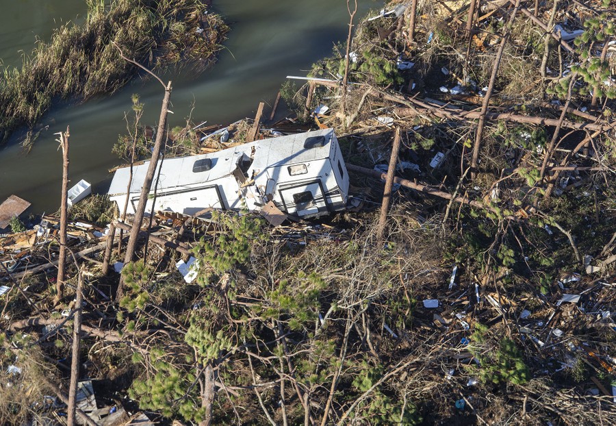 Authorities are now saying at least 18 deaths have been caused by Hurricane Michael across four states. Michael crashed into the Florida Panhandle on October 10 as a powerful Category 4 storm, with sustained winds of 155 mph. One of the hardest-hit towns was Florida’s Mexico Beach, southeast of Panama City, where entire neighborhoods appear to have been erased by the ferocious winds—the debris of the structures scattered far inland among boats and shattered trees. Below, recent photographs from Mexico Beach, Panama City, and neighboring towns, as the full extent of the damage wrought by Michael becomes clearer.