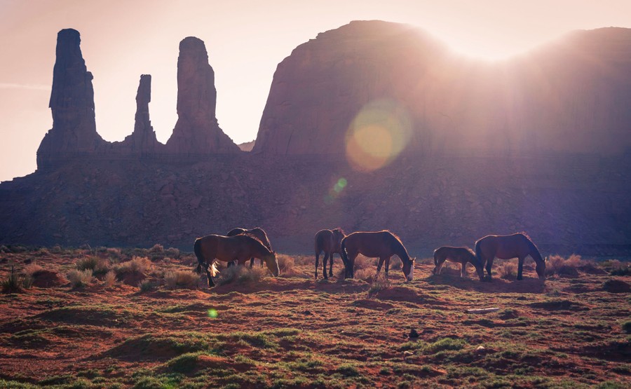 Read moreHorses graze in Utah with features of Monument Valley in the background. #