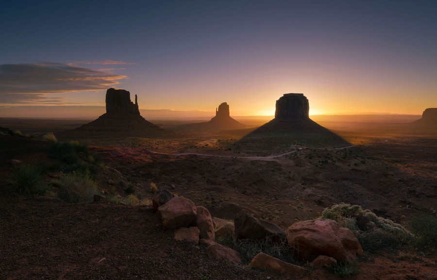 Read moreThe sun sets on (from left) West and East Mitten Buttes and Merrick Butte in Monument Valley, Arizona, on June 12, 2019. #