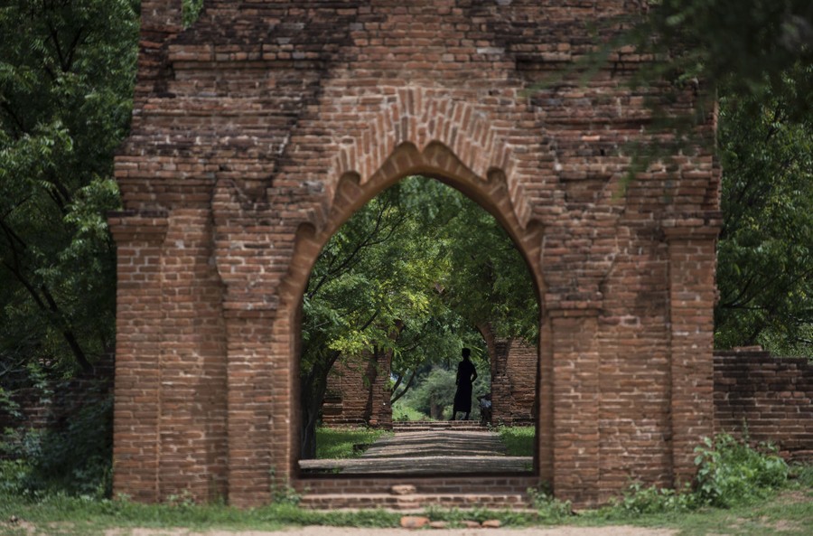 Read moreA man stands in the shadow of an arch at the ancient Sinphyushin Temple on August 26, 2016. #