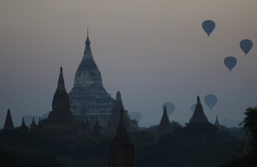 Read moreHot-air balloons float over ancient temples at sunrise, on December 27, 2016. #