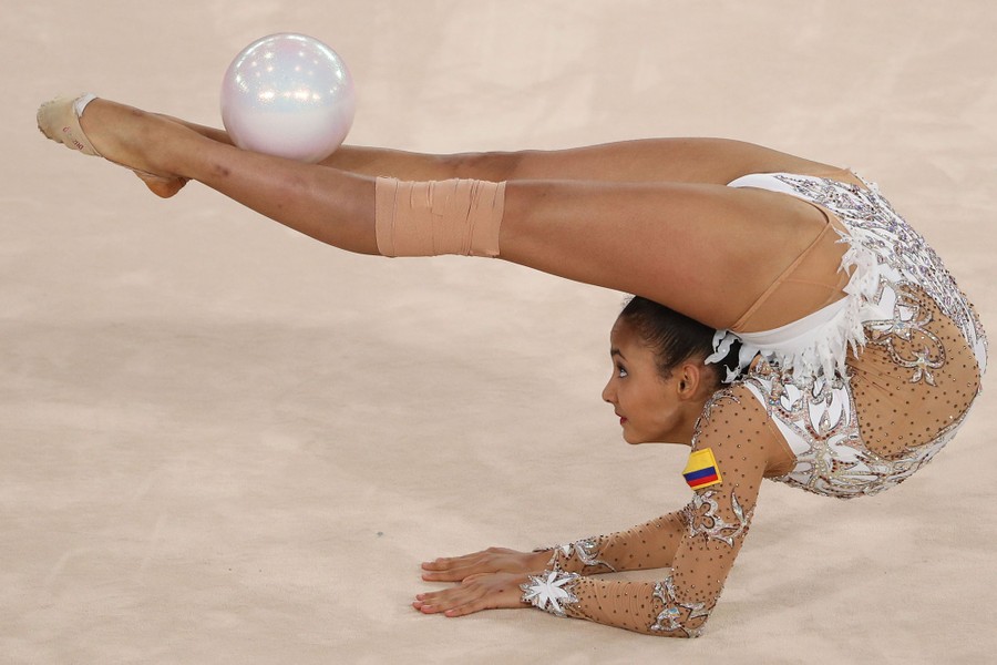 Read moreOriana Vinas of Colombia competes in the rhythmic-gymnastics individual all-around and qualifications ball event at the Villa El Salvador Sports Center on August 2, 2019. #