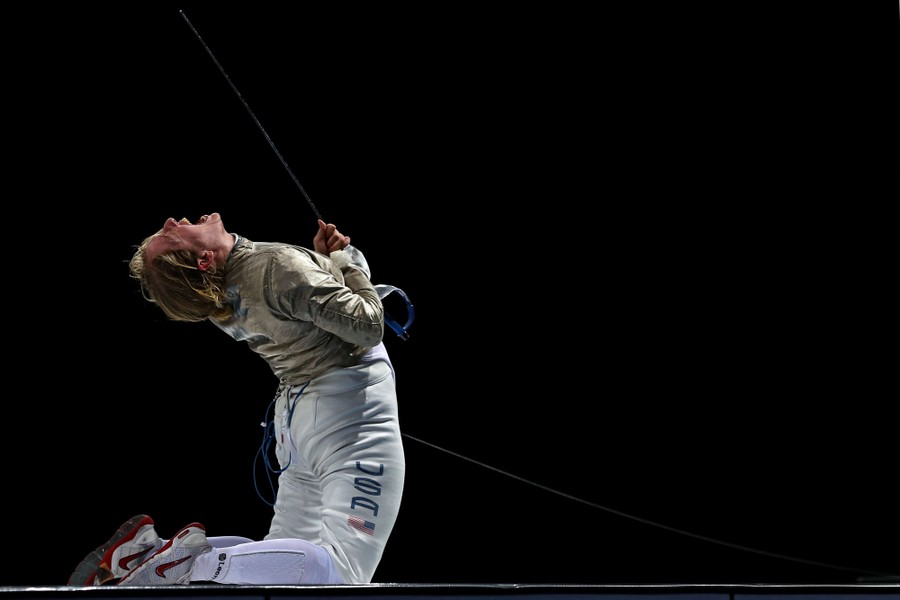 Read moreAnne-Elizabeth Stone of the United States celebrates after defeating María Belén Pérez Maurice of Argentina in the women's fencing saber individual gold-medal bout on day 11 at the Lima Convention Center. #