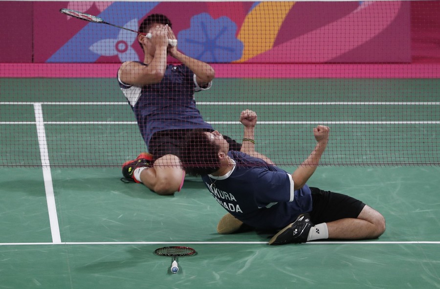 Read moreJason Ho-Shue (left) and Nyl Yakura of Canada celebrate their gold-medal badminton win in the men's doubles against Phillip Chew and Ryan Chew of the United States at the Pan American Games in Lima on August 2, 2019. #