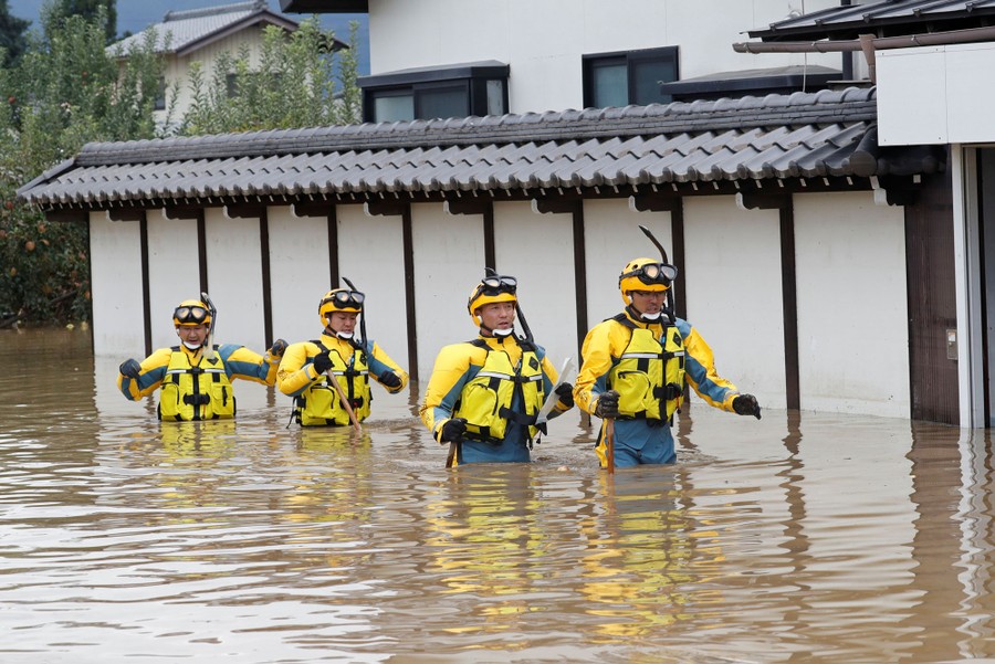 Read morePolice search a flooded area in Nagano prefecture in the aftermath of Typhoon Hagibis on October 14, 2019. #
