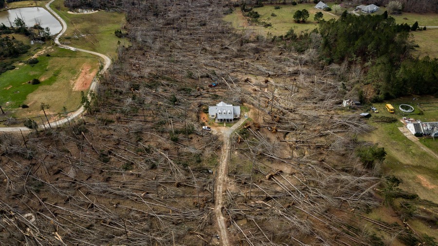 Read moreHome Survives Direct Hit From Tornado. Finalist, American Experience. This home was in the direct line of a tornado that hit Ellerslie, Georgia. Most of the trees on the property had fallen, but the house stood with minimal damage. #
