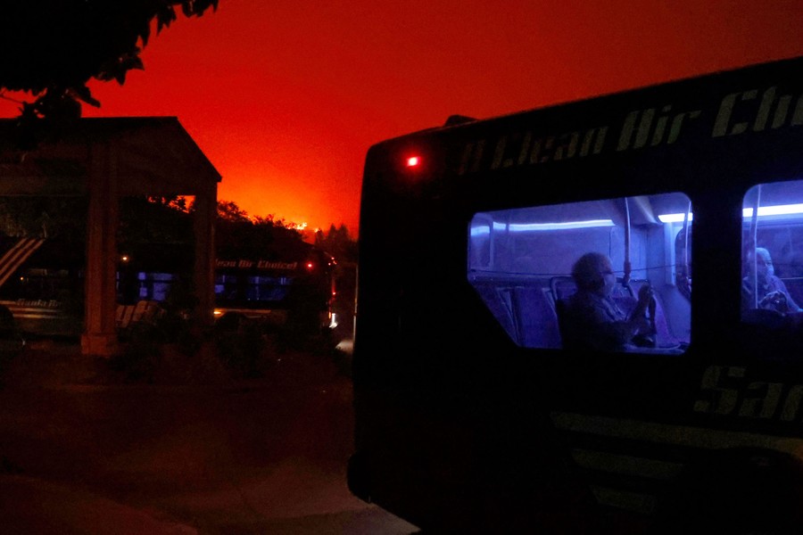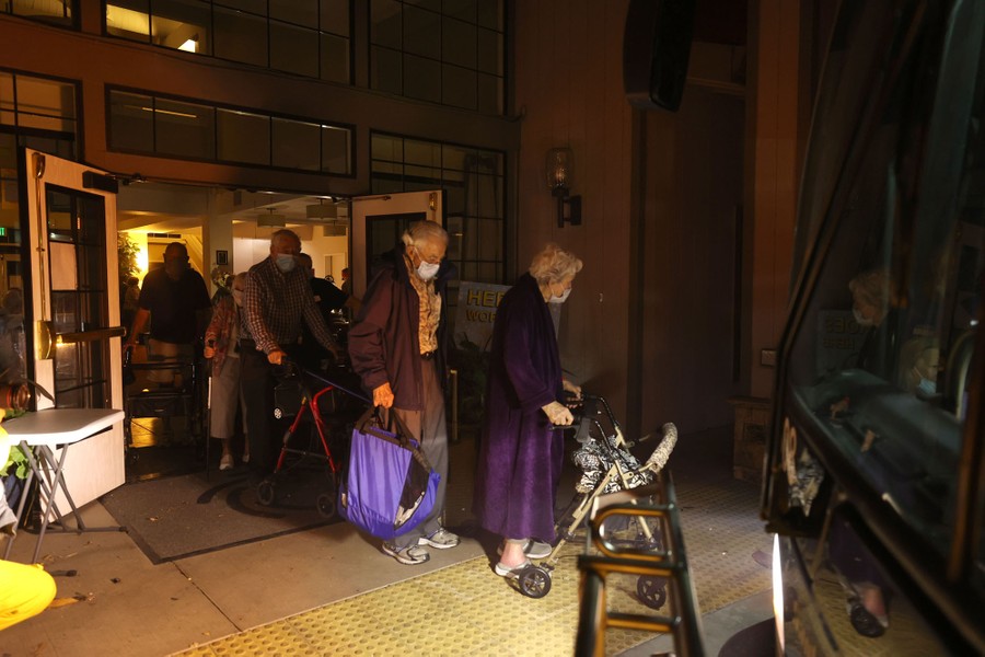 Read moreResidents of the Oakmont Gardens retirement community are loaded onto a city bus as they evacuate ahead of the Shady Fire on September 27, 2020, in Santa Rosa, California. #