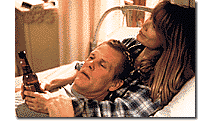 Novelist Russell Banks's somber concerns -- small-town corruption, the legacies of pain passed down in families undermined by alcoholism and abuse -- are a magnet for filmmakers who are drawn to life's darker corners. Although it's structured like a murder mystery, Paul Schrader's adaptation of Banks's 1989 novel Affliction is a quietly devastating character study of a divorced New Hampshire cop, Wade Whitehouse (played by Nick Nolte -- who better?), whose every effort to live a decent life with his girlfriend, Margie (Sissy Spacek), is thwarted by the legacy of a childhood spent defending himself and his younger brother, Rolfe (Willem Dafoe), against their bullying drunkard of a father, Glen (James Coburn). When a prominent weekender on a hunting trip is found shot to death, Wade's suspicions lead him to a course of action that inflames all his "afflictions" -- from a chronic toothache, to his futile battle for custody of his daughter, to his unabated rage against his enfeebled father. In lesser hands the line drawn from the sins of the father to those of the son might seem pat. Coburn and Nolte give marvelously abrasive performances, the vicious symbiosis of their characters underscored by flashbacks to the days that shaped the warped perspective of Wade, a good man driven to terrible deeds.
