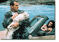 Like last year's Welcome to Sarajevo, a new film by Serbian director Predrag "Gaga" Antonijevic dramatizes the wars in the former Yugoslavia through the rescue of a child by a previously disengaged individual from the West. Irritating though it is to have every foreign event shaped by the heroism of an American, it's unlikely that Savior would have been made, let alone seen in the United States, without some major Hollywood names attached and Oliver Stone headlining the producers. In the movie an American soldier (Dennis Quaid), numbed by the death of his beloved wife (Nastassja Kinski) and son and his own savage retaliation, changes his name to the generic "Guy" and, along with his best friend (Stellan Skarsgard), turns mercenary for the Serbian faction in Bosnia. He finds himself on a journey through the war-torn region with an outcast Serbian woman (Nastasa Ninkovic) who has given birth to a Muslim baby girl. Savior is not a subtle film (the scenes of violence are devastatingly graphic), but neither are the conditions it describes. Though hobbled by Robert Orr's stagy screenplay, the movie is appropriately troubling and moving -- as far as it goes. In its effort to avoid stepping on any political toes, Savior suffers from the limitations that afflict any story focusing on the universal aspects of war: we learn much about what we already knew -- that war is hell -- while understanding little about the specifics of this war.