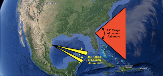 The first fundamental truth of rocketry is that the closer a launch site is to the equator, the greater the free boost it gets from the Earth's rotational speed. A related truth is that it's better to launch rockets over the ocean than over populated land. Camden County has just now received a report from a Georgia Tech team headed by professor Robert Braun, a NASA veteran, on the advantages this means for its location. For instance: