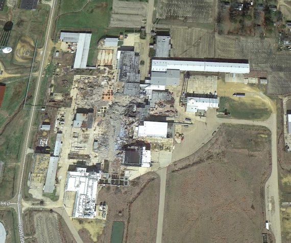 Hokey, yes. But Higgins said that the helicopter then did several circles around the plant, while the chairman stared down at the devastation. "He looked over at me, and nodded," Higgins said. "I told the pilot, We can go now." (Below, a Google Earth screenshot of the now-being-demolished remains of Bryan/Sara Lee.)