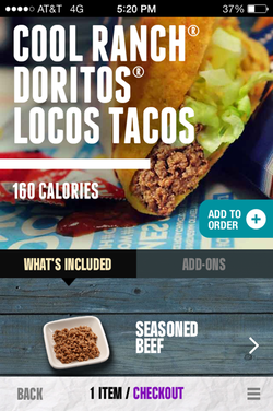 Using the app, I set up one of the staples of my normal Taco Bell regimen, which involves the Cool Ranch variety of the infamous Doritos Locos taco. But suddenly, I had options. Options I never (perhaps out of self-preservation) even dreamed of. I could add rice, a bevy of different sauces, and even potatoes to my Doritos Locos taco.