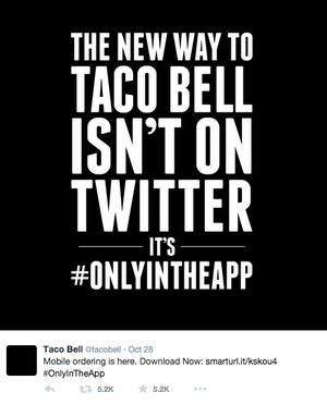 The publicity rollout for the app employed typical Taco Bell panache⎯the company downed its own website and blacked out its entire social media presence in promotion of the Live Más app.