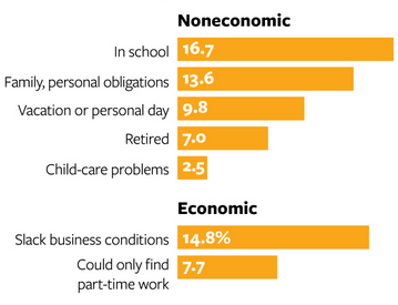 Employees now are less inclined to "unplug" for fear of being seen as unproductive and let go. And they may not be wrong. Managers are being asked to accomplish more with fewer employees. Production and service workers find themselves clamoring with their co-workers for more hours as their managers try to schedule the exact amount labor needed—and no more—to accommodate their production or sales needs. Store managers are afraid to post schedules too far in advance in case the sales patterns shift without warning.
