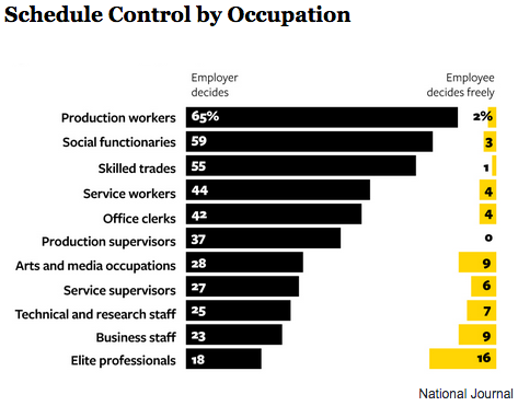 The increase in women in the workforce has been the most important change in employment over the last two generations, according to workplace analysts, and it has placed a new premium on flexibility. The term means something different to each worker and each employer, but sociologists say it can be boiled down to one essential component—a worker's ability to control her schedule to accommodate needs outside of work.